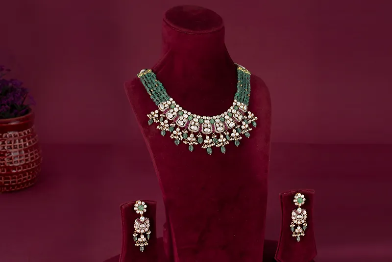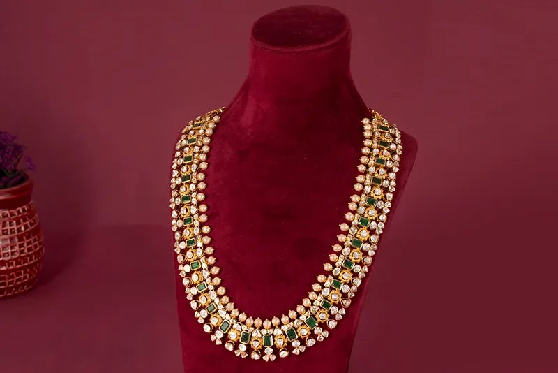 Introducing “Shubharambh,” a spellbinding wedding jewelry collection that captures the essence of elegance and grandeur. Crafted with precision, it showcases a captivating array of exquisite and royal designs, in Gold, Polki and Diamonds craftsmanship. This collection is a tribute to the timeless beauty of brides, reflecting their unique journey with every piece. Adorned with intricate detailing, each ornament radiates opulence and sophistication, embodying the significance of a new beginning. “Shubharambh” not only embellishes the bride but also resonates with tradition, heritage, and an unparalleled commitment to craftsmanship, making it the perfect choice for brides seeking to embrace their special day with grace and magnificence.